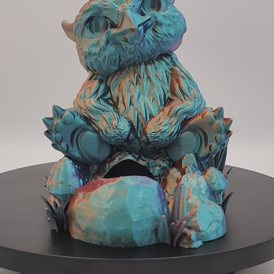 Cuddly chaos awaits in the Baby Owlbear Dice Tower. This wide-eyed creature tumbles your dice with ferocious charm and a hint of mischief.