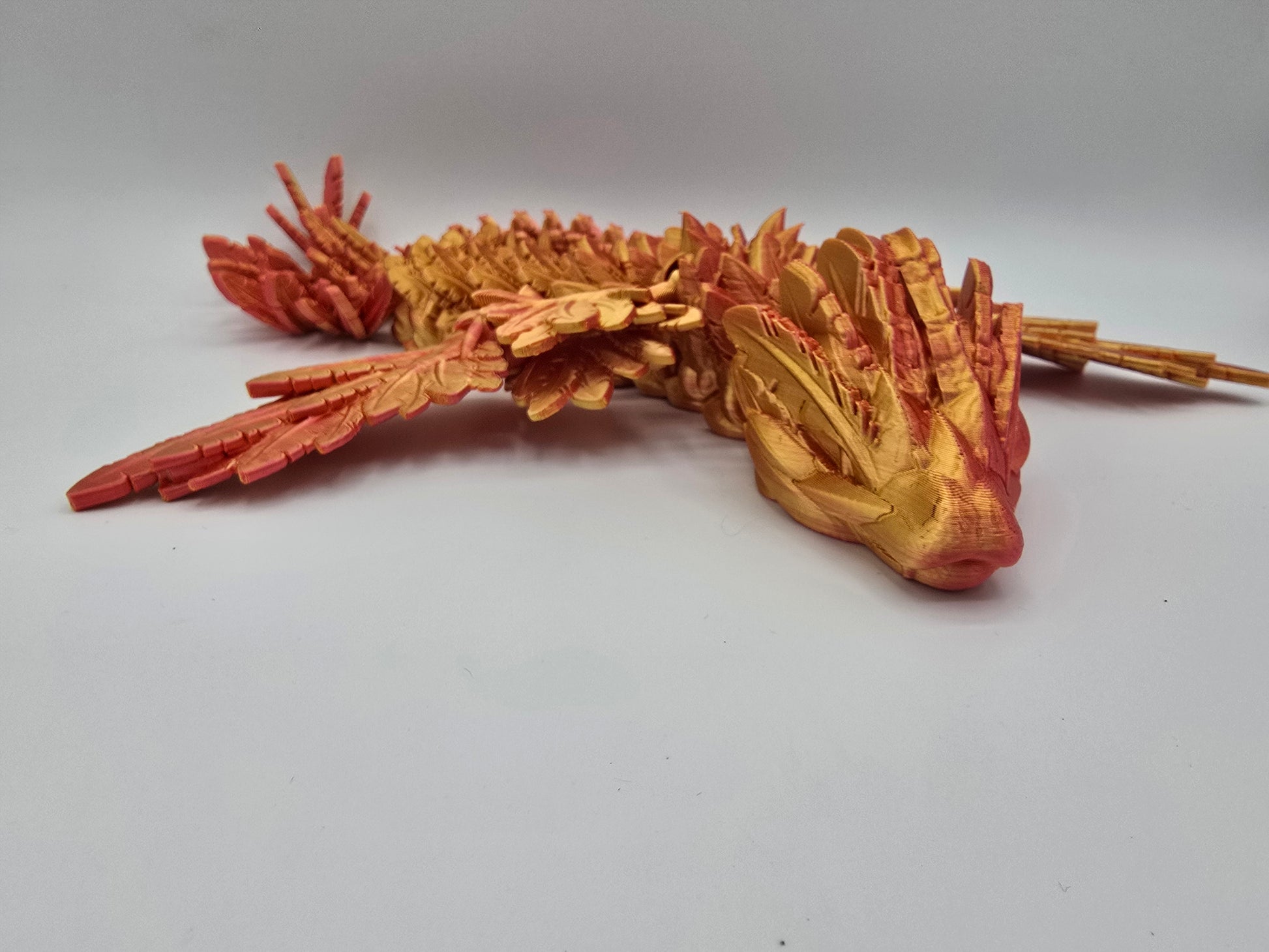 Graceful as wind and restless as legend, the Flying Serpent Dragon is a creature of pure motion. Its sinuous body twists and coils with lifelike ease, responding to touch like a spell come alive. Whether gliding across a tabletop or perched in quiet display, this dragon brings a ripple of magic to every moment. A mesmerizing blend of elegance, energy, and myth.