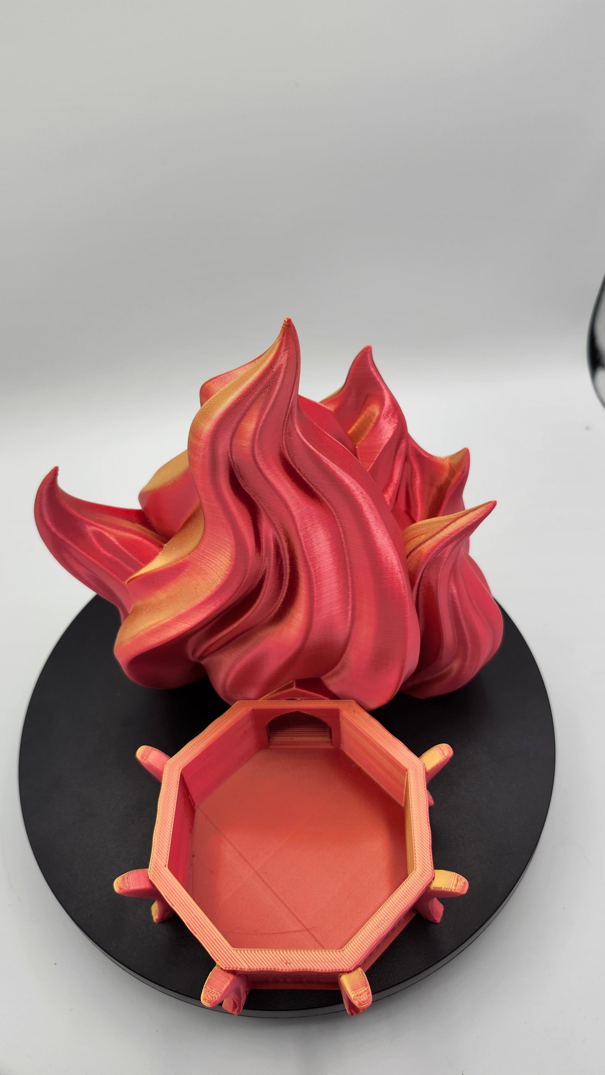 The Flame Dice Tower crackles with elemental energy, forged for bold adventurers and pyromancers alike. Every roll feels like a spark waiting to ignite.