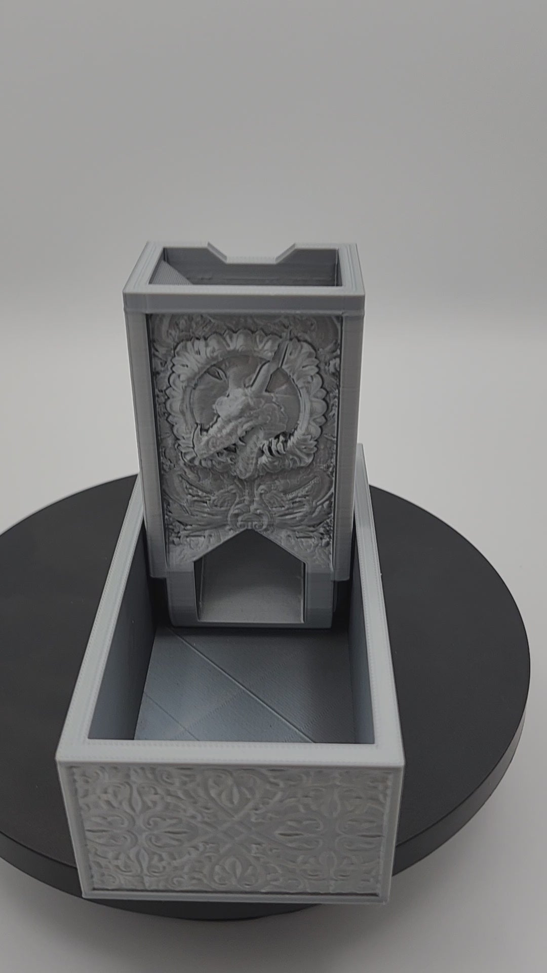 Majestic and portable, the Dragon Folding Dice Tower unfurls like wings in flight. Ideal for travel, treasure hoards, and tabletop adventures on the go.