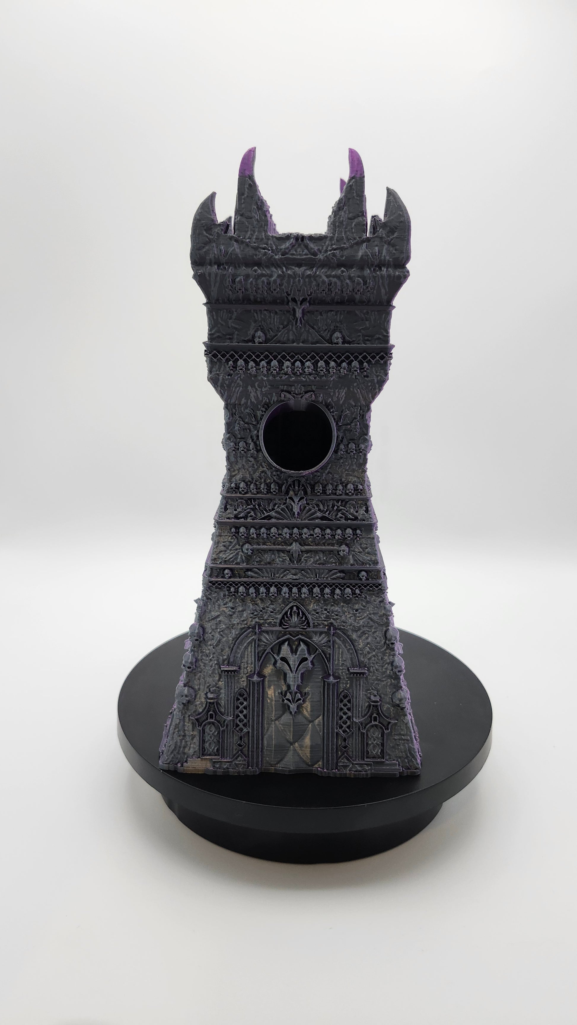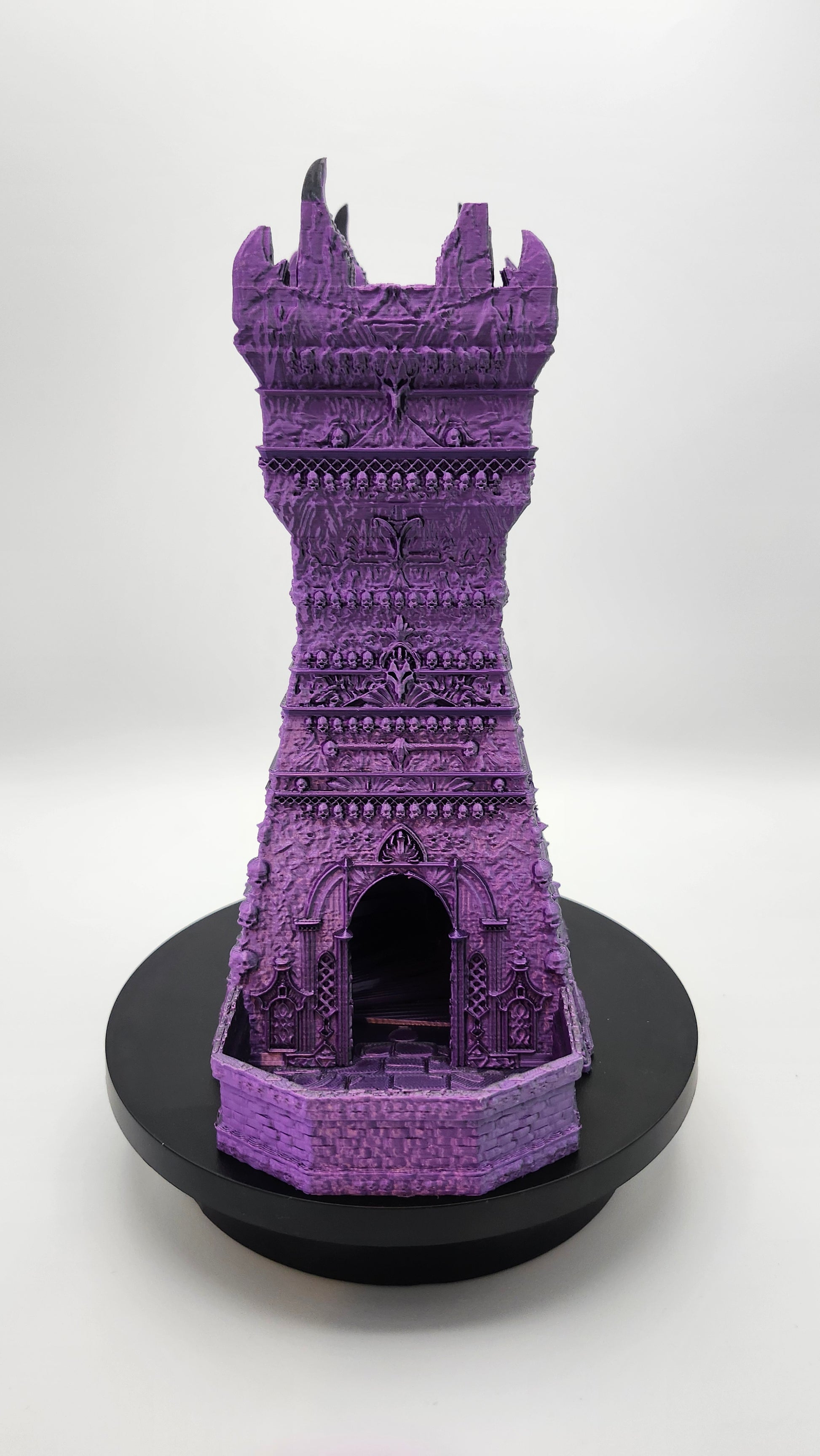 Dark magic pulses through the Necromancer Dice Tower, a conduit for cursed rolls and forbidden fate. Perfect for summoners and shadow-dwellers.