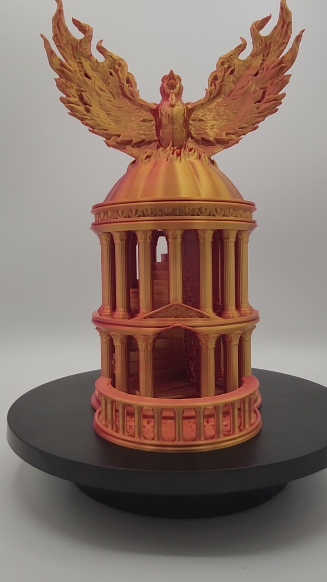 Rise, roll, repeat. The Phoenix Dice Tower blazes with rebirth energy, perfect for comeback crits and dramatic rerolls.