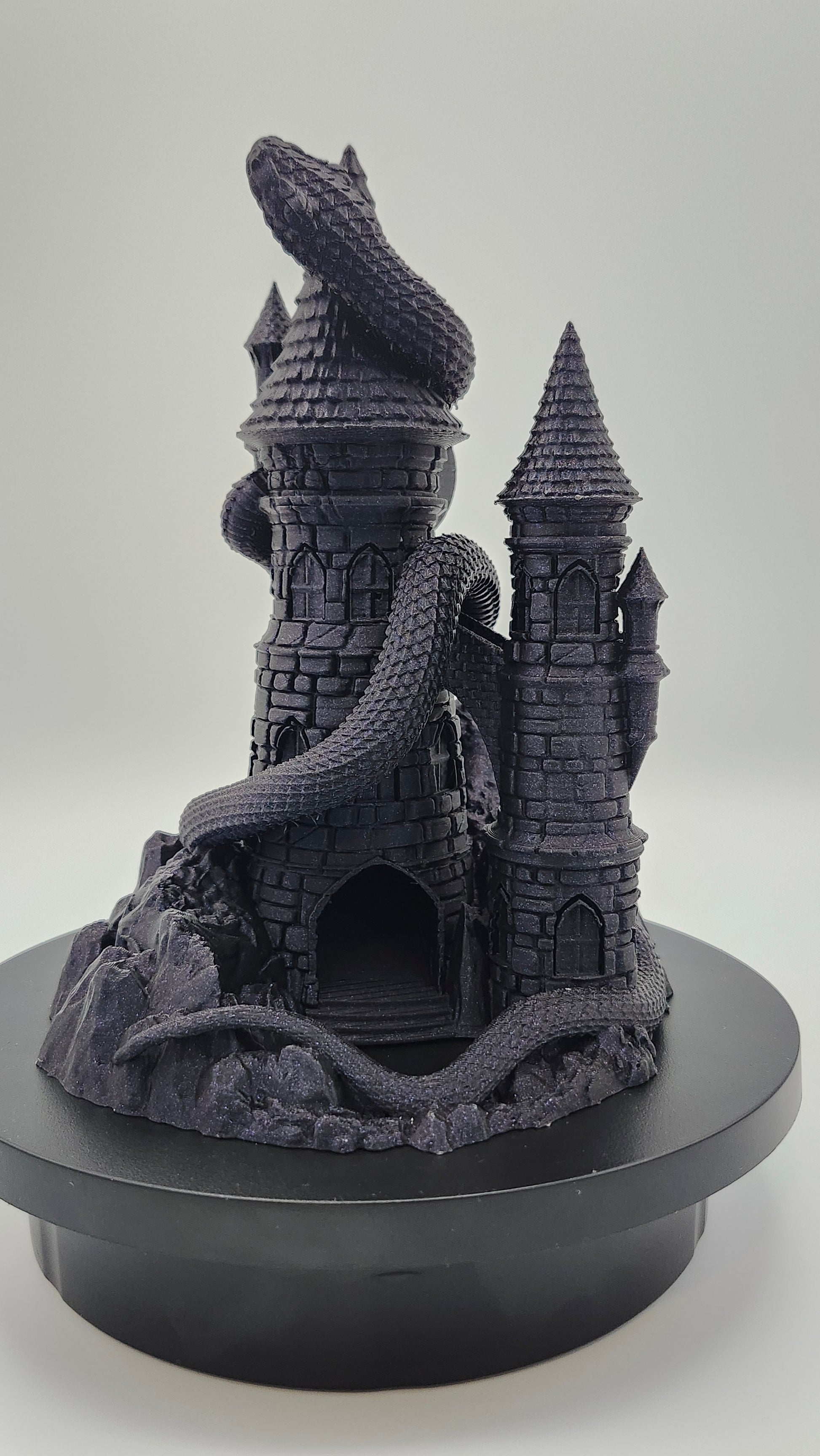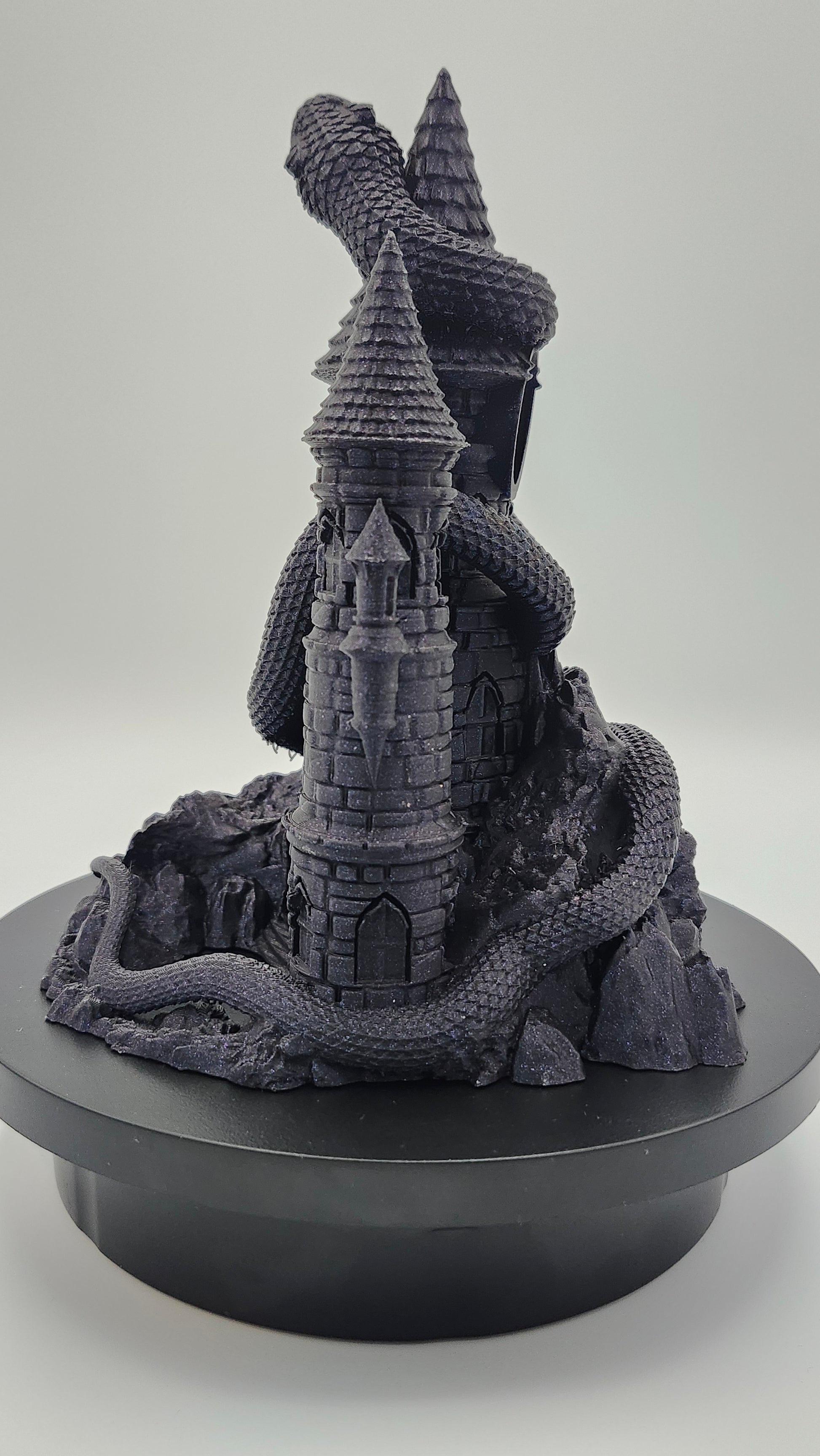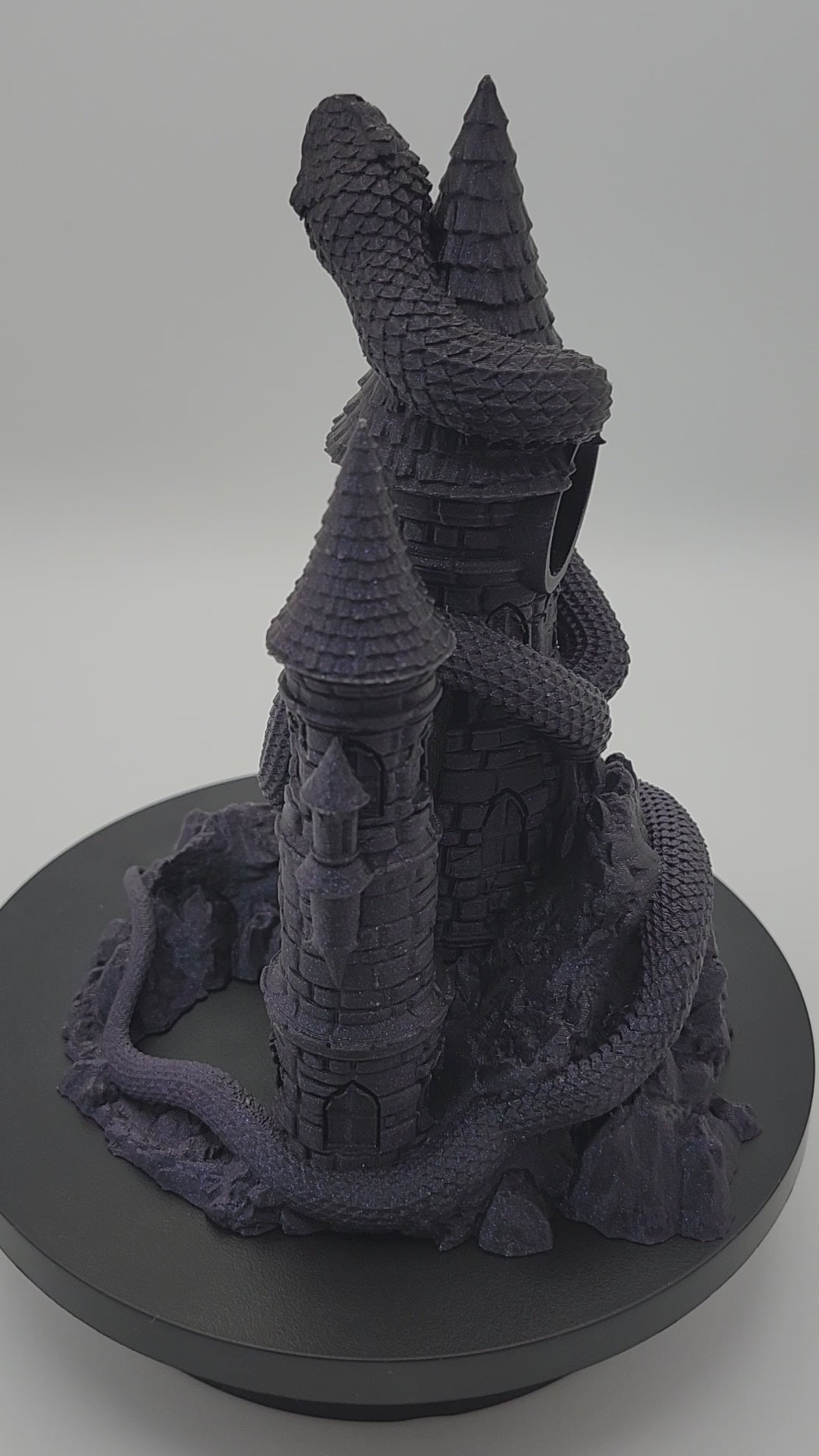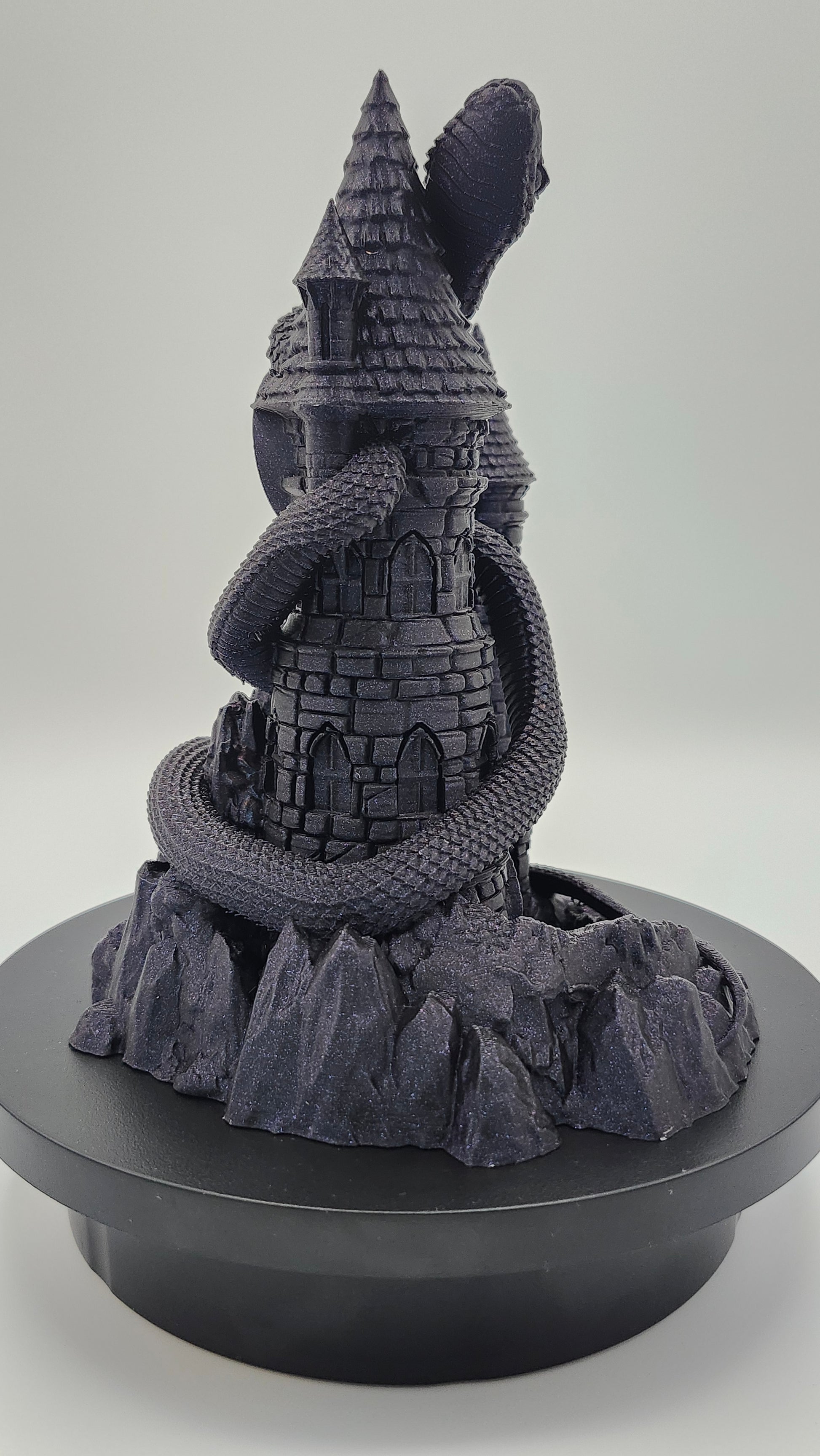 A towering spire wrapped in the coils of a mighty serpent, this 3D-printed display piece evokes ancient magic, forgotten kingdoms, and the watchful gaze of a creature that never sleeps. With intricate stonework, dramatic spires, and lifelike scales, it’s perfect for tabletop terrain, collector shelves, or storytelling scenes that demand a touch of mythic menace.